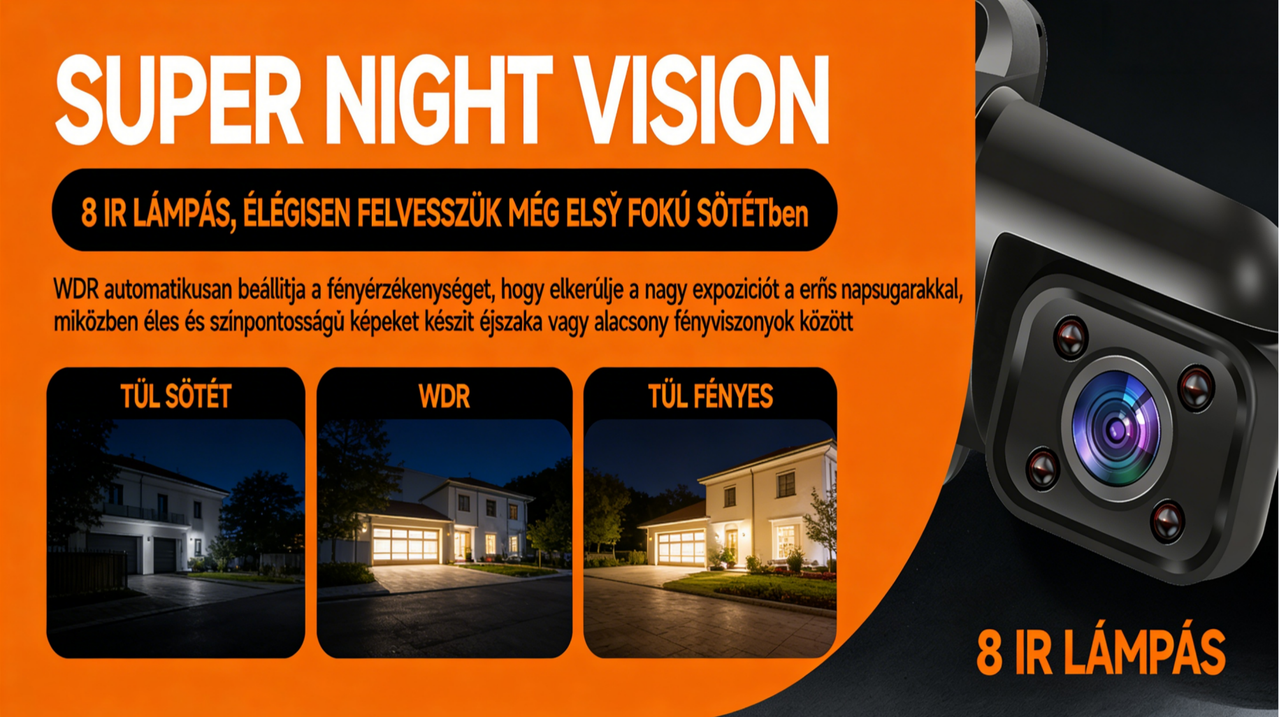 - A bal és jobb oldali kamerák 8 infravörös LED-del felszereltek
