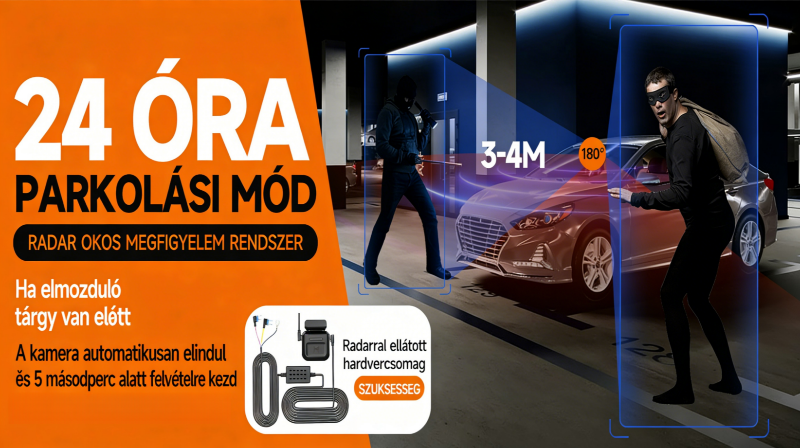 24 órás parkolófelügyelet · Álló helyzetben is védelem