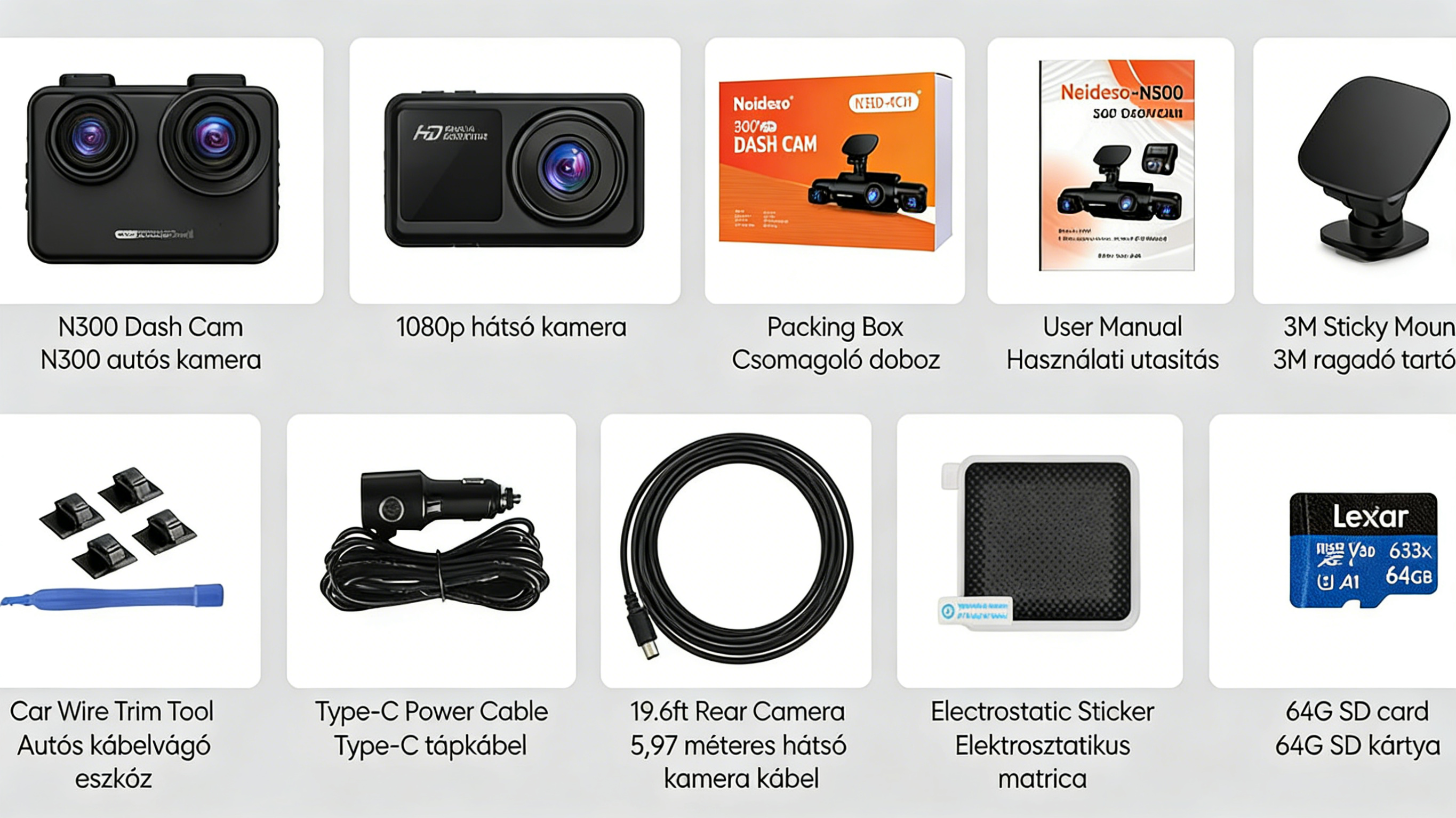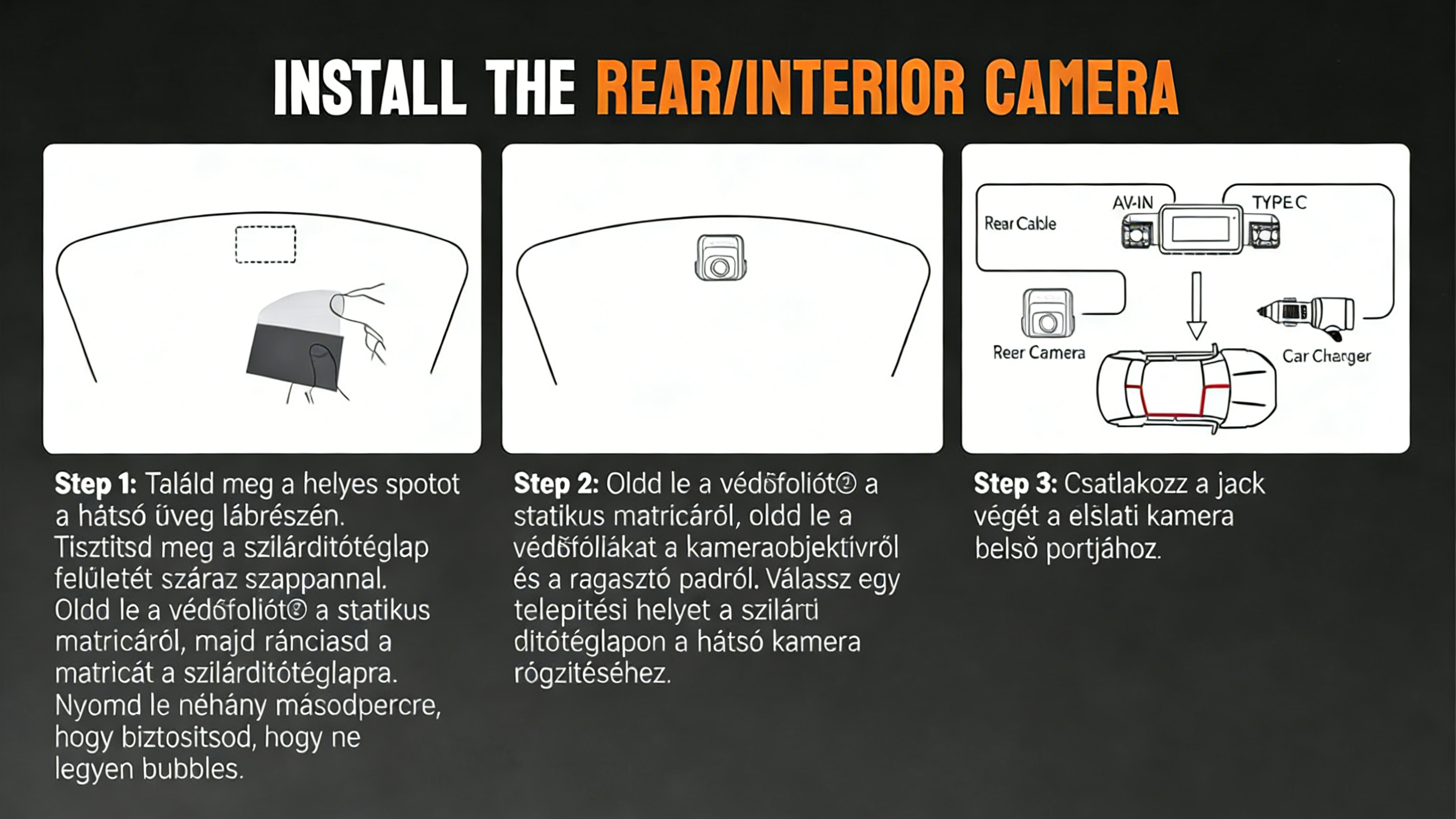 - Átlátható első és hátsó kamera rögzítés, könnyű beszerelés