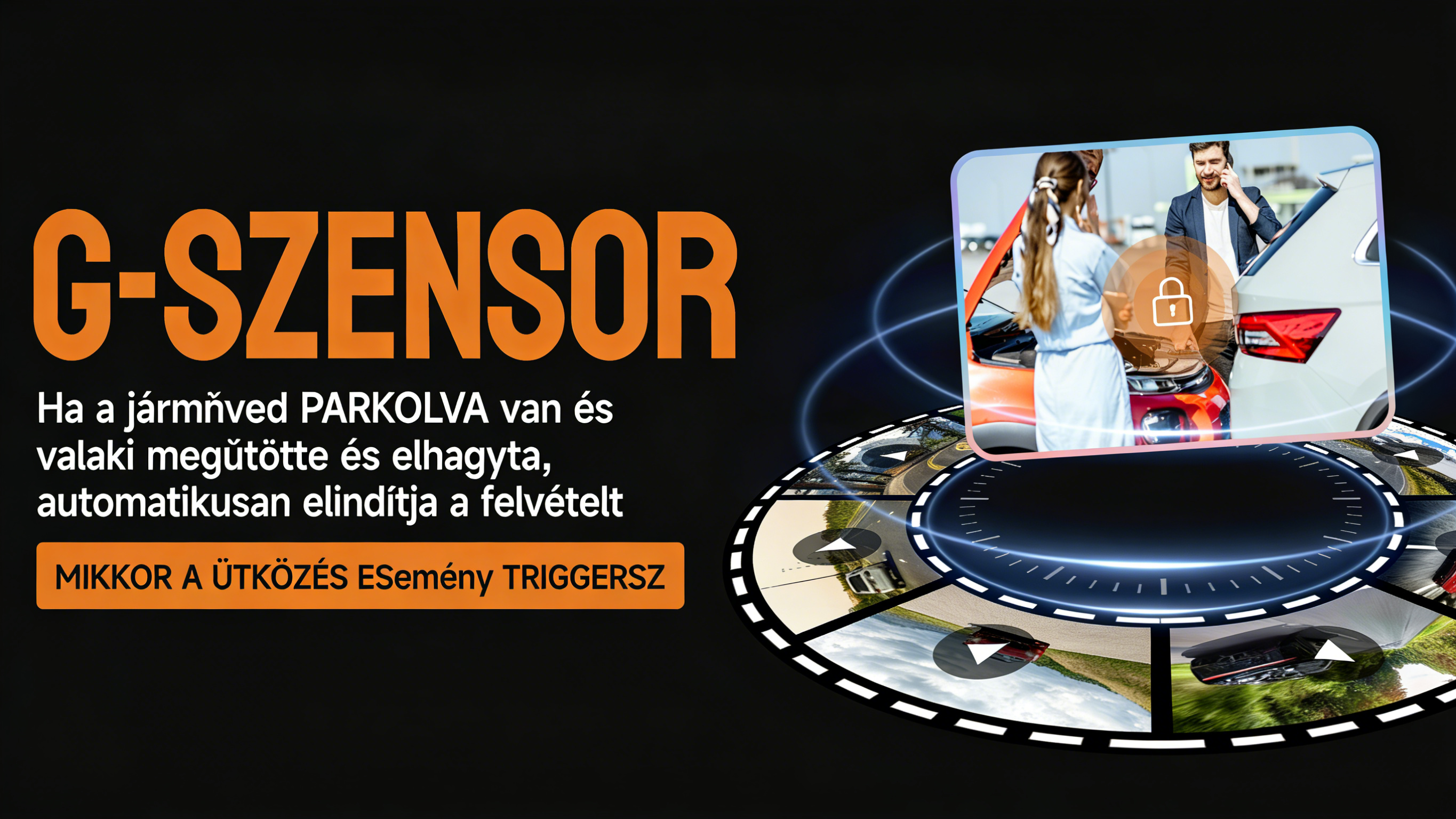 - Ütközés esetén a G-szenzor azonnal elindítja a vészrögzítést